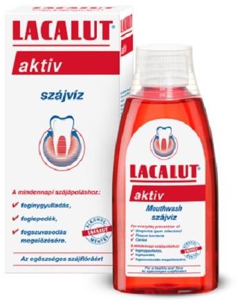 Fogmosás előtt alkalmazva feloldja a bakteriális foglepedéket ? mely az egyik fő kiváltó oka a fogszuvasodásnak és fogínysorvadásnak. Fogmosás után, vagy két fogmosás között a LACALUT aktiv szájvíz gátolja a fogkő képződését, és ezzel megelőzi a fogínygyulladást. Ideális és hatásos műfogsort viselők számára is. Használata :Öblögessen intenzíven 30-40 másodpercig, kb. 10 ml LACALUT aktiv szájvízzel! Utána már ne öblögessen vízzel! Egészségkárosodástól nem kell tartania, ha véletlenül lenyelné. Használja reggel, napközben és este! Figyelmeztet s :Használat után alaposan zárja le. Közvetlen napsütéstől, vagy nagy hőtől óvja. Csak hat évnél idősebb gyermekek használhatják, ha már elsajátították a szájöblítés technikáját. Bis(hydroxyethyl)aminoprop yl-N-hydroxyethyl-octadecylamine-di-hydr ofluoridot tartalmaz. Fluoridtartalom 225 ppm Alkoholt nem tartalmaz! Csoma golási egység : 300 ml Tárolás : Legfeljebb 30 oC-on.