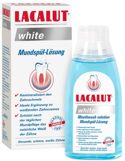 Lacalut white szájvíz 300 mlA fehérítő fogkrémek kiegészítéséreA fogak fehérségének megőrzéséreA fogzománc erősítéséreTisztítja és ápolja a fogakat. Ajánlott a mindennapos szájápoláshoz. Fogmosás után a LACALUT white szájvíz gátolja a fogkő képződését, és megőrzi a megtisztított fogak természetes fehérségét. Az elszíneződéseket eltávolítja, és a fogzománcot újra mineralizálja. A természetesen fehér, erős fogakért. Ideális és hatékony műfogsort viselőknek is.
