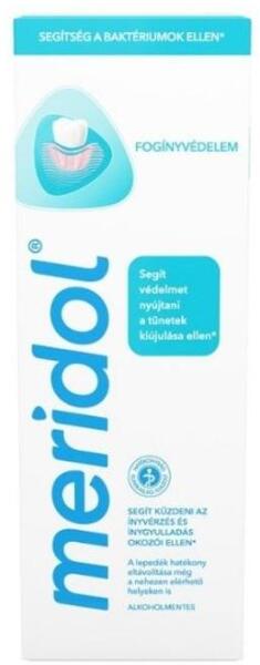 Életképtelenné teszi a fogmosás után visszamaradó plakkokat, melyek a fogínygyulladás kialakulásának elsődleges oka. Az aminfluorid/ónfluorid egyedülálló hatóanyagkombinációja raktározódik a fogak felszínén, ezáltal hosszú ideig védelmet biztosít a fogmosás után is az új plakkok kialakulása ellen. A Meridol nyugtatja és regenerálja a gyulladt fogínyt.