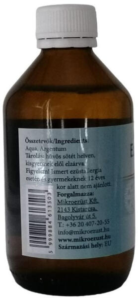 Az ezüstkolloid oldat a hatékonyságát azzal fejti ki, hogy gátolja az egysejtű kórokozók anyagcseréjéért felelős enzimműködést. 250 ml-es ezüstkolloid szájvíz; Mikroezüst termék fertőtlenítéshez.