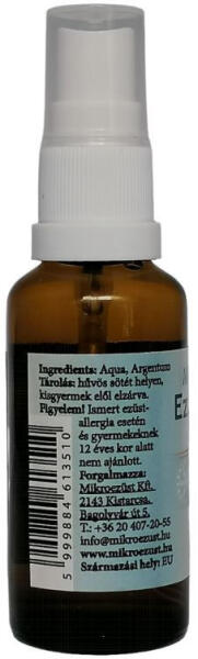 Az ezüstkolloid oldat a hatékonyságát azzal fejti ki, hogy gátolja az egysejtű kórokozók anyagcseréjéért felelős enzimműködést. 30 ml-es ezüstkolloid szájvíz; Mikroezüst termék fertőtlenítéshez.