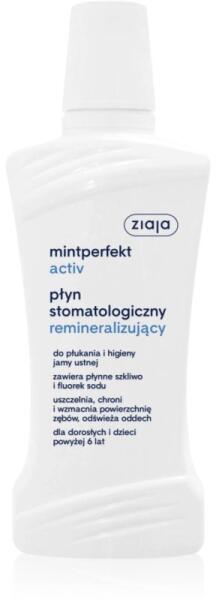 Ziaja Mintperfekt Activ, 500 ml, Szájvizek és szájspray-k unisex, A minőségi Ziaja Mintperfekt Activ szájvíz nem csak felfrissít leheletét, de egyben a foglepedék ellen is hat, és segít megőrizni a fogíny, valamint a fogak egészségét. Tulajdonságok: küzd a fogszuvasodás ellen foglepedék elleni védelem friss leheletet biztosít erősíti a fogzománcot csökkenti a fogak érzékenységét Használata: Tanítsa meg a gyermekét, hogy fogmosás után öblögesse a száját szájvízzel a csomagoláson megjelölt ideig, majd köpje ki.